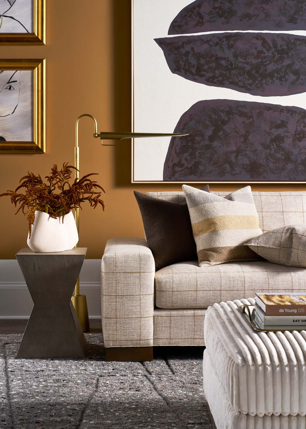 Change out artwork and accessories to reflect the change of season. Add a trio of brass candlesticks to a new side table, bring in a festive bar cart, or layer in a few extra mirrors to reflect the muted light of fall and winter. Inviting colors and varied textures will instantly make your space feel warm and welcoming, setting the tone for memorable holiday gatherings.