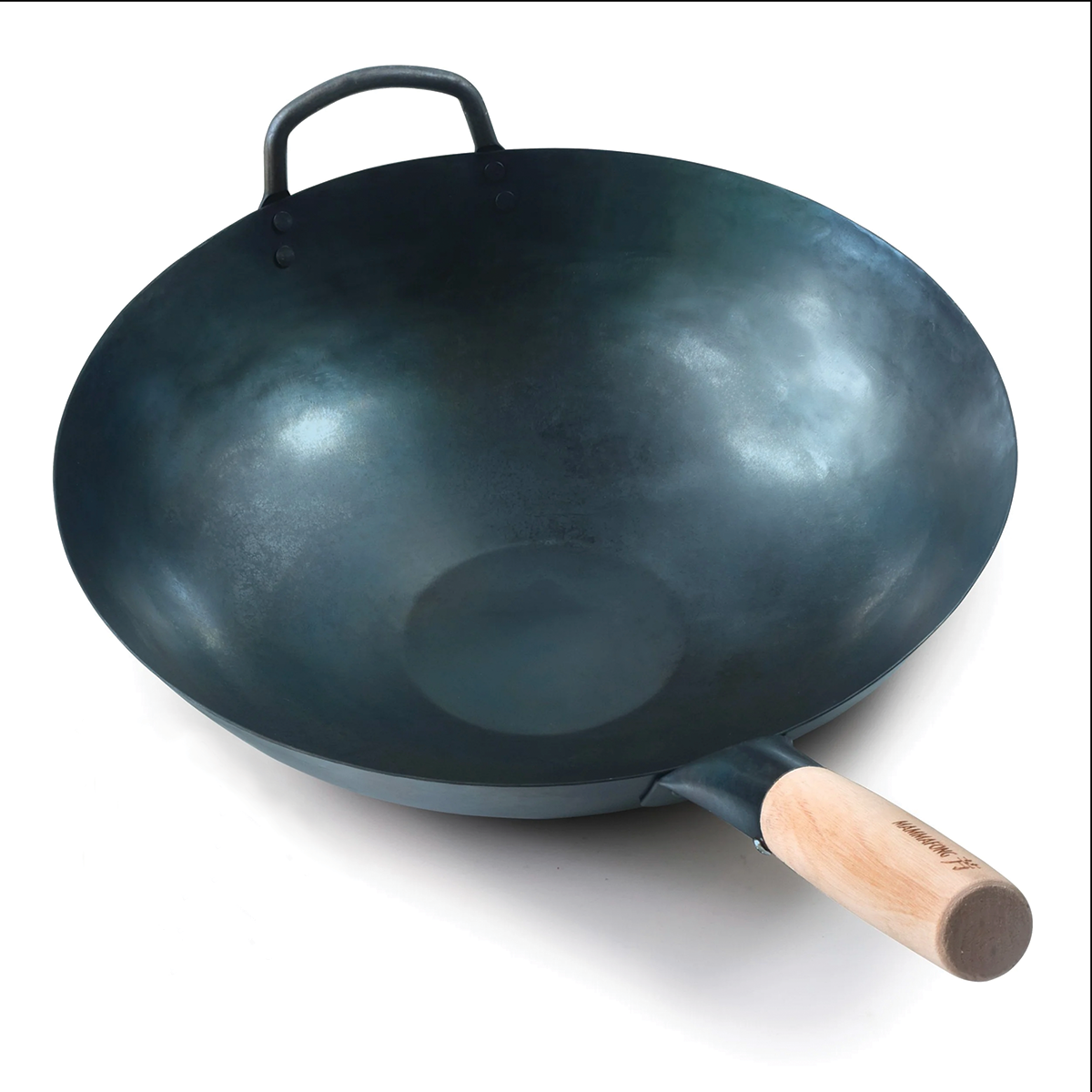 Mammafong Pre-Seasoned Carbon Steel Hand-Hammered Flat-Bottom Pow Wok, 14 inches, $109.99.