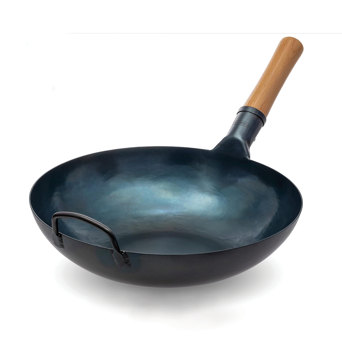 Yosukata Flat-Bottom Wok Pan, 13.5 inches, blue carbon steel, $85.99.