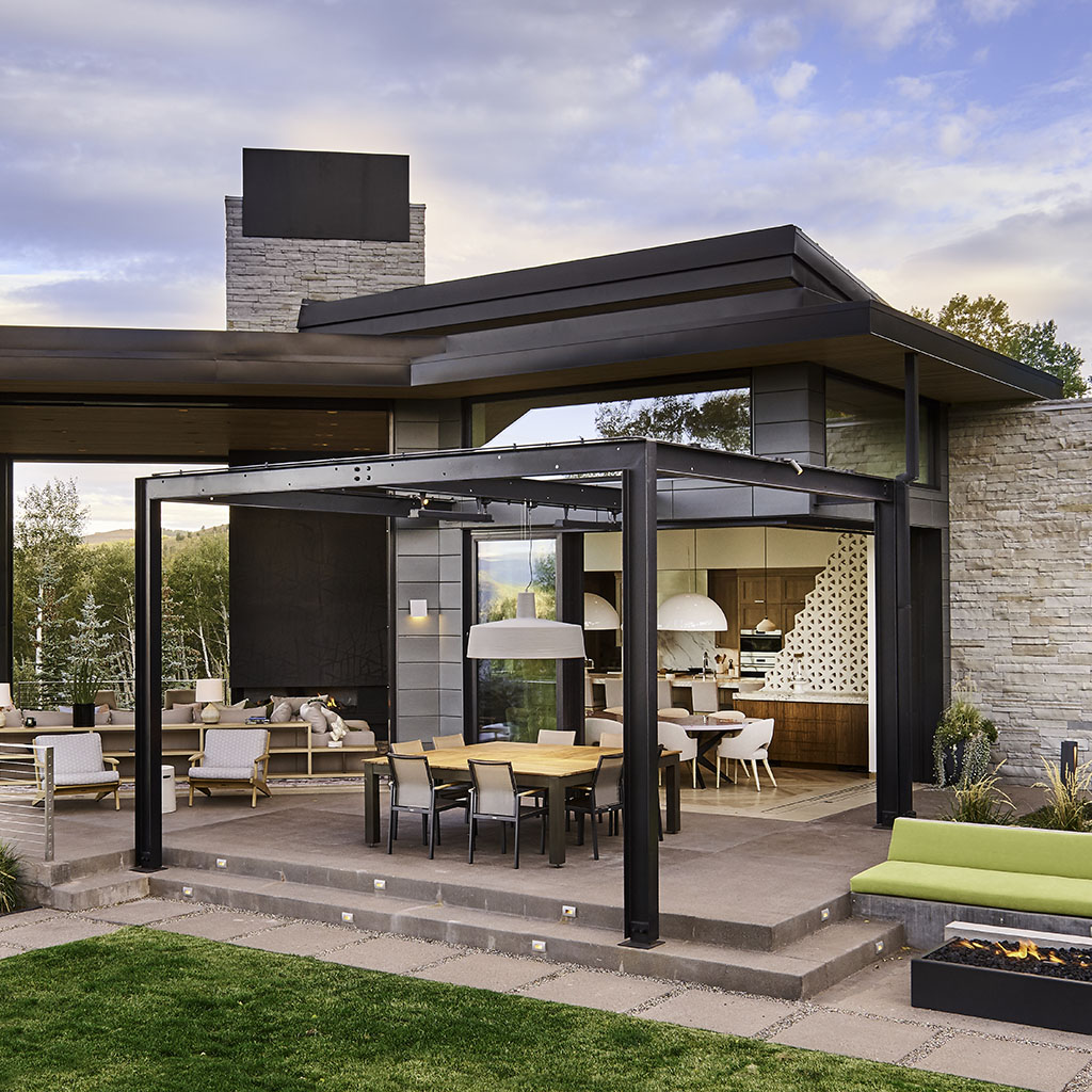 Taking full advantage of the best that mountain living offers, modern homes blur the lines between inside and out with inviting, highly functional spaces such as outdoor dining rooms and kitchens, multiple configurations of seating areas, inviting fire pits and more.
