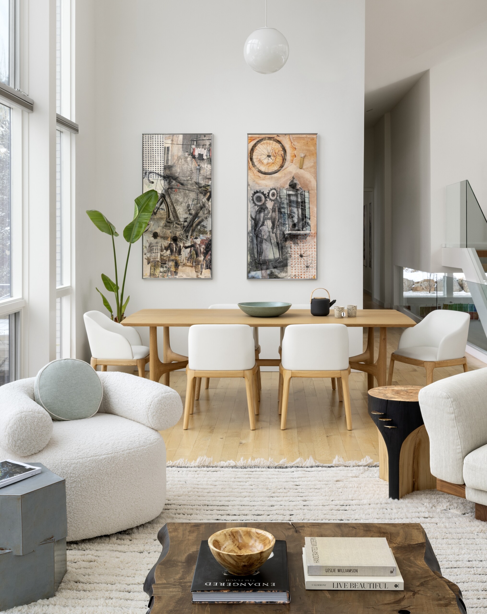 Dining Room The homeowners were interested in furniture that was sustainably sourced, like this dining table. “It’s by a maker called Ethnicraft that does natural finishes like a low-VOC finish and uses sustainable oak,” says Tenzin. | Photo: Kimberly Gavin
