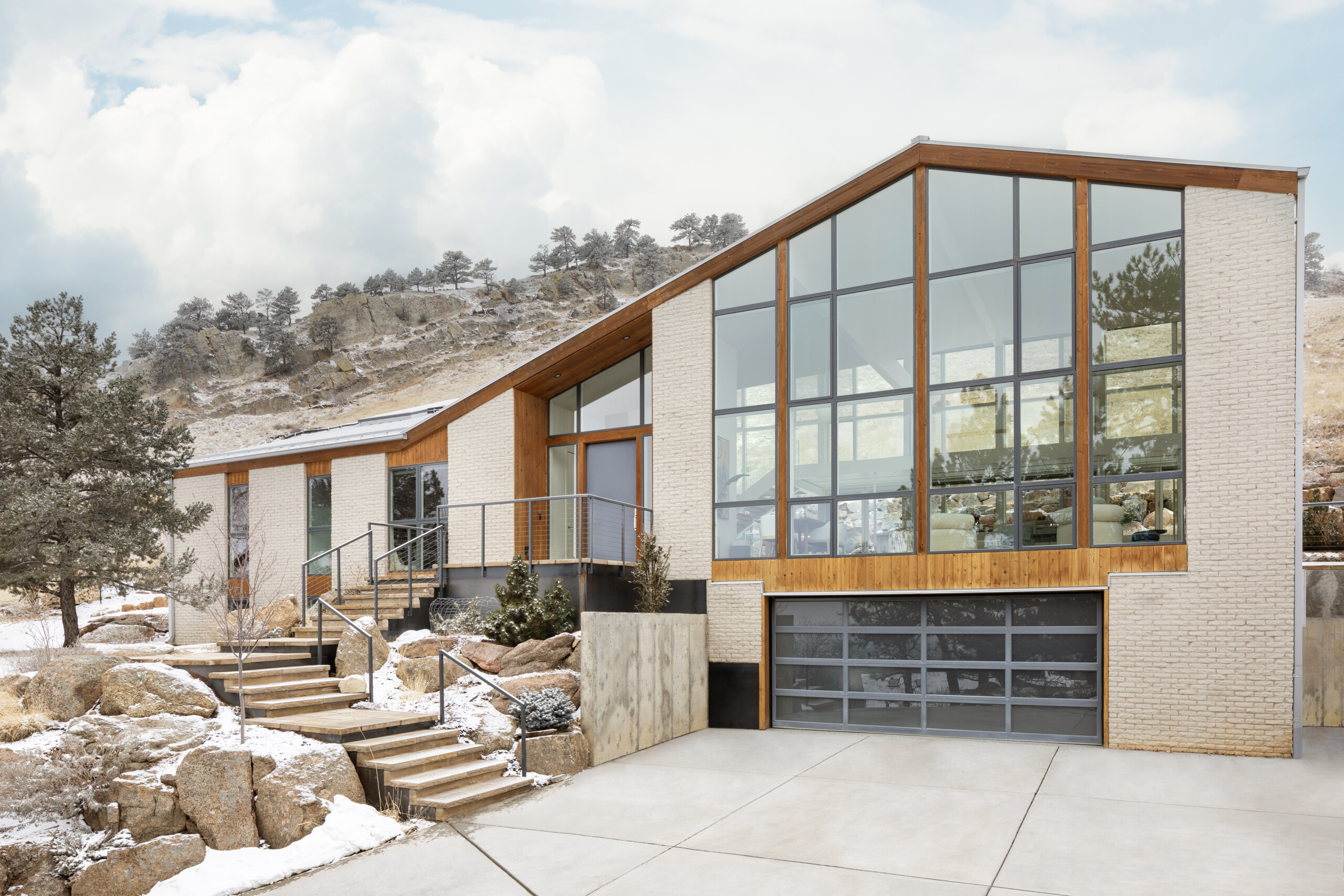 Exterior The front of the 1971 ranch remained mostly unchanged, with the mustard-color brick restacked and stained a bone color. The huge front window wall, which overlooks downtown Boulder, was part of the original design. | Photo: Kimberly Gavin