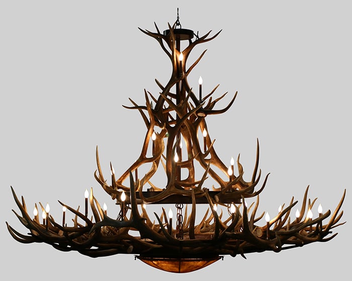 Custom-designed for a game ranch’s lofty great room, this expansive fixture is the epitome of rustic luxury.