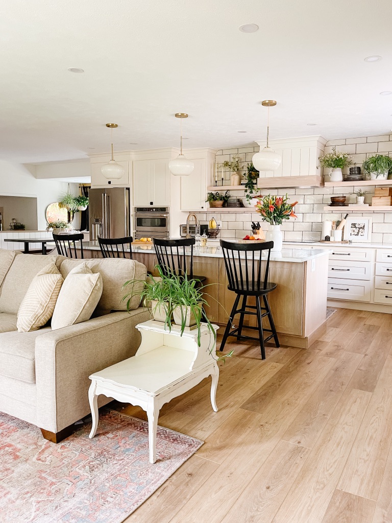 I love how open and bright it is now. Removing the walls recreated our entire space. Plus, our south facing windows are perfect for letting. the natural light in.