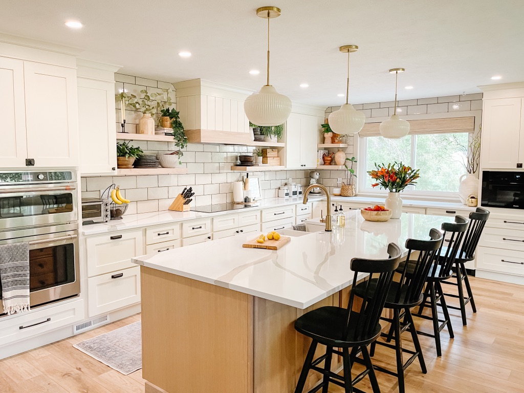 At the center of our house, the kitchen is where we spend the most time as a family, hence why this design became so pivotal for us. The old kitchen was not functional for a family of four. With an island, the kids can sit together while I have the space I need to make a meal. Now I even prefer working at the island!
