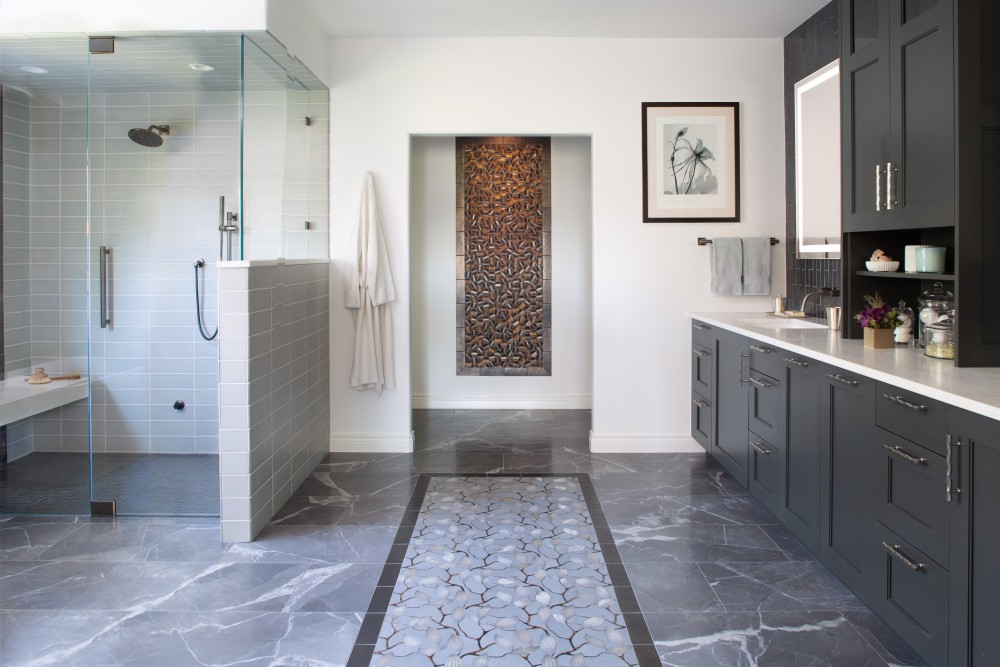 Materials can really shine in a master bathroom. Decorative tile inlays are a great way to bring beauty and an artistic flair into the space, giving homeowners a chance to be a little more adventurous than they might be in other areas. Textures, colors, and lighting are all great areas to jazz up a master bathroom and help to create that tranquil oasis we are all looking for.