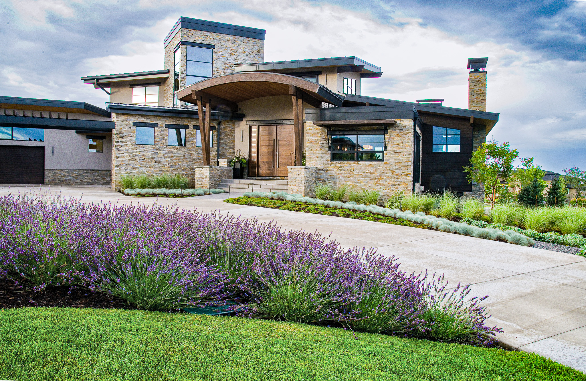 For homes marked by clean lines and minimalist aesthetics, the landscape should mirror this simplicity. Key features include utilizing sleek hardscaping materials like smooth stone or concrete and structured plantings characterized by sharp geometric shapes. Opt for low-maintenance yet stylish elements such as grasses and succulents, which reflect the home’s modern aesthetic.