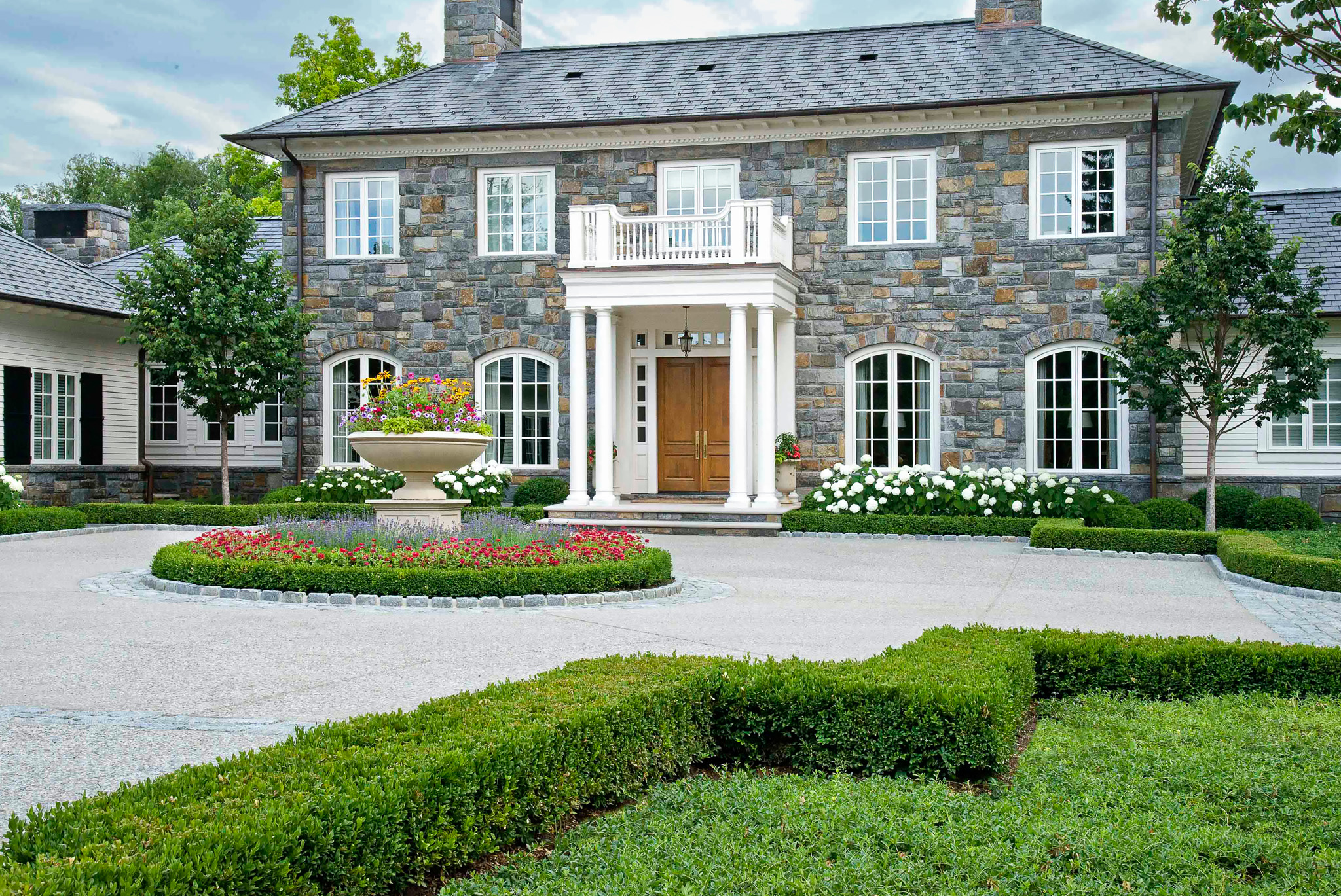 These structures are noted for their symmetrical build and classical dimensions. Complement these aspects with symmetrically designed landscapes—imagine formal gardens, meticulously shaped hedges, and pathways that draw the eye straight to the main entrance. Incorporate traditional flora such as boxwoods or hydrangeas to achieve a timeless appearance that enhances the home’s historical design.
